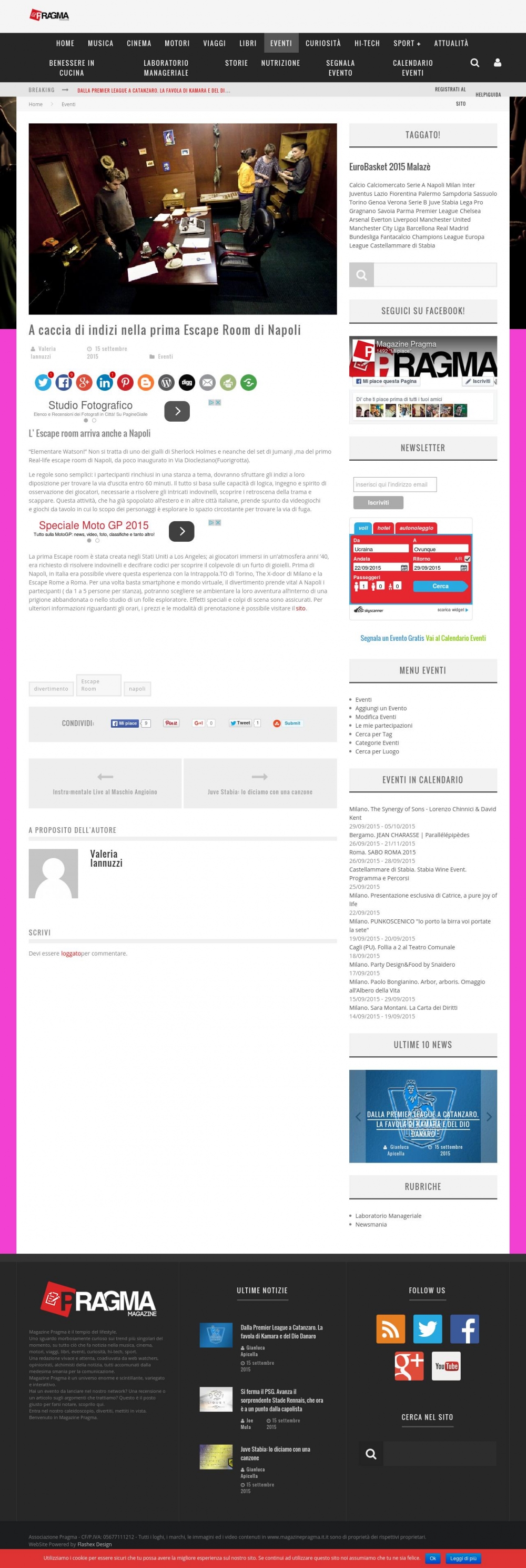 Magazine Pragma - A caccia di indizi nella prima Escape Room di Napoli