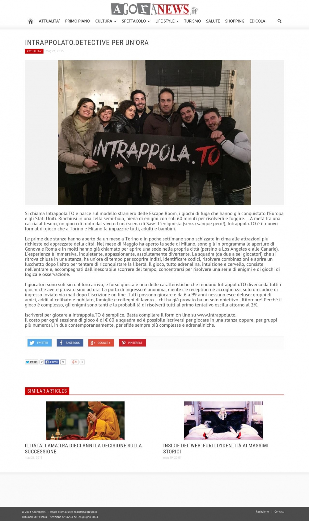 www.agoranews.it - Intrappola.to: detective per un'ora