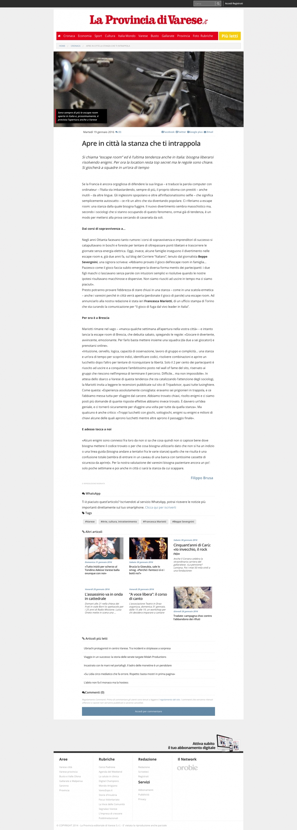 La Provincia di Varese - Intrappola.to: Apre in città la stanza che ti intrappola