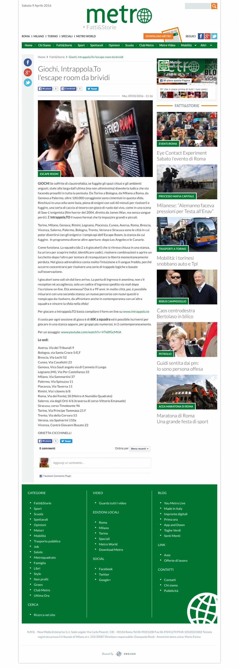 Metro - Giochi, Intrappola.To l'escape room da brividi