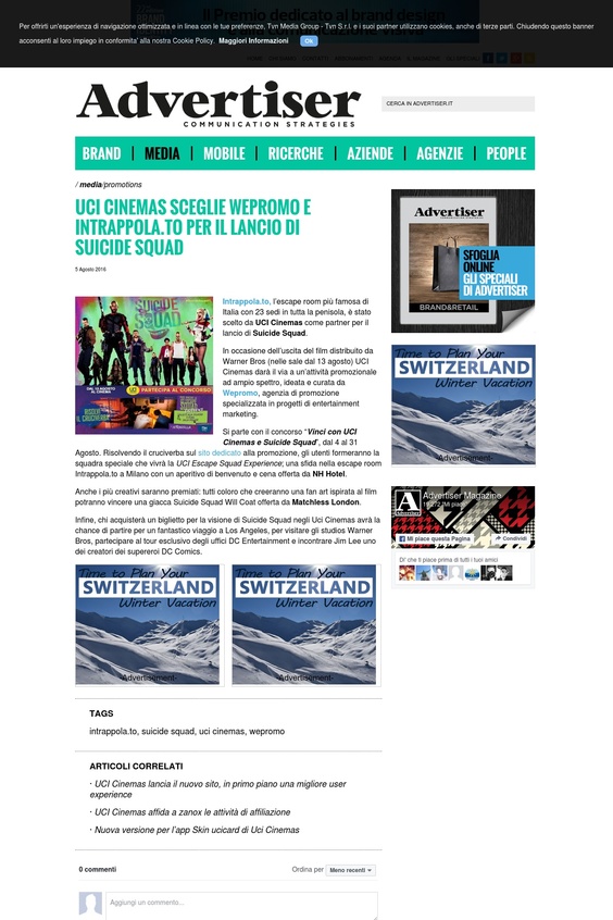 Si chiama Intrappola.TO e nasce sul modello straniero delle Escape Room, i giochi di fuga che hanno già conquistato l’Europa e gli Stati Uniti. Rinchiusi in una cella semi-buia, piena di enigmi con soli 60 minuti per risolverli e fuggire…. A metà tra una caccia al tesoro, un gioco di ruolo dal vivo ed una scena di Saw-L’enigmista (senza sangue però!), Intrappola.TO è il nuovo format di gioco che fa impazzire tutti, adulti e bambini. Torino, Milano, Genova, Rimini, Legnano, Piacenza, Cuneo, Aversa, Roma, Brescia, Vicenza, Salerno, Palermo, Bologna, Trento, Verona, Ravenna, Siracusa e Venezia sono le città in cui poter divertirsi con gli enigmi e i rompicapi dell’Escape Room più apprezzato del momento. Oltre 150.000 persone hanno giocato a questa avvincente sfida; e non è un caso che il popolo del web collochi Intrappola.to su TripAdvisor tra le attrazioni più amate delle città in cui è presente (prima a Torino, Legnano, Rimini, Piacenza e Aversa; seconda a Milano, Genova…). E diverse aziende hanno scelto Intrappola.To per i loro Team Building. Sono già in programma diverse altre aperture: un successo travolgente che sta contagiando moltissime altre città (persino a Los Angeles, New Tork e alle Canarie). L’esperienza è coinvolgente, inquietante, appassionante, assolutamente divertente. La squadra (da due a sei giocatori) che si ritrova chiusa in una stanza, ha un’ora di tempo per scoprire indizi, identificare codici, risolvere combinazioni e aprire un lucchetto dopo l’altro pe