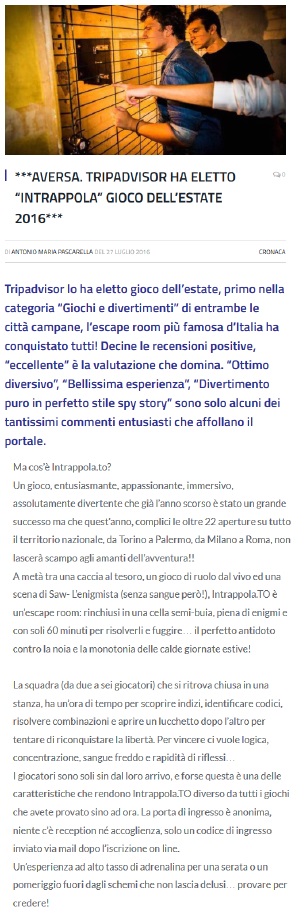 Corriere Caserta - Aversa: TripAdvisor ha eletto Intrappola.to gioco dell'estate 2016