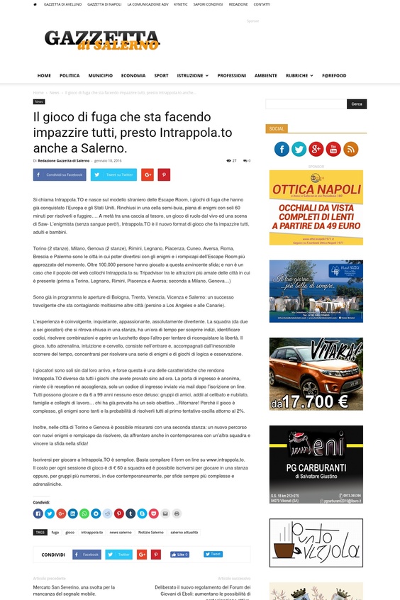 Gazzetta di Salerno - Il gioco di fuga che sta facendo impazzire tutti, presto Intrappola.to anche a Salerno