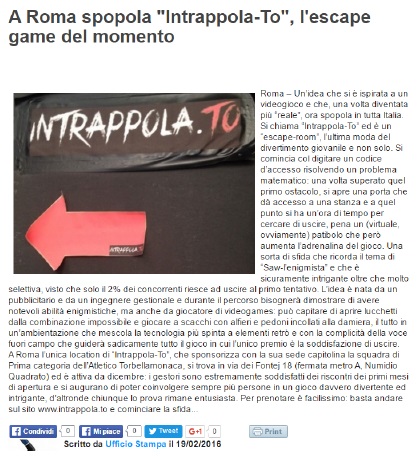 LazioinGol - A Roma spopola Intrappola.to, l'escape game del momento