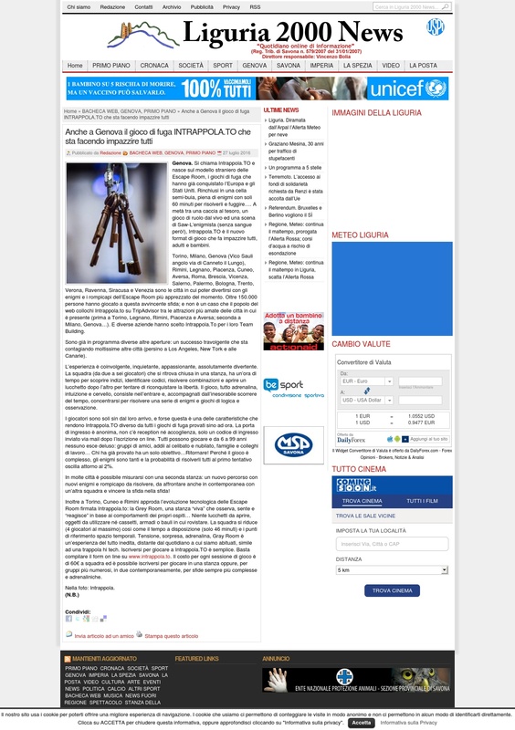 Liguria 2000 news - Anche a Genova il gioco di fuga Intrappola.to che sta facendo impazzire tutti