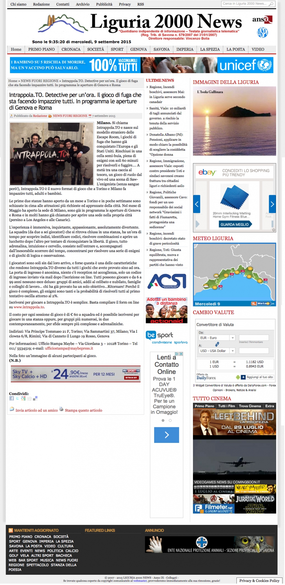 Liguria 2000 news - Intrappolato: detective per un'ora